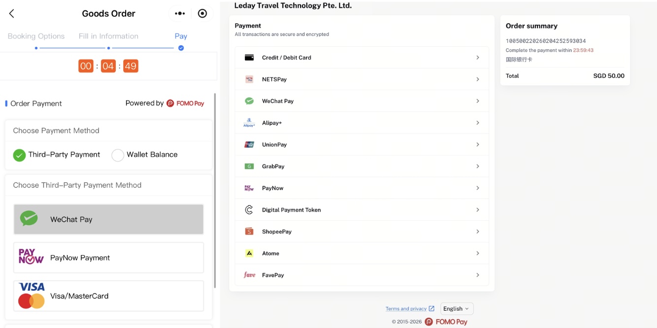FOMO Pay partners Leday Trip to enable a seamless digital tourism experience, from browsing and booking to payment and confirmation. By providing a cross-border payment infrastructure that supports multiple currencies, local wallets, international cards, and automated settlement, FOMO Pay allows travellers on Leday to pay securely and conveniently, giving Leday a unified, scalable solution to manage complex payments.